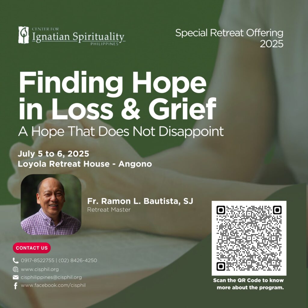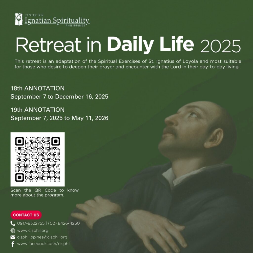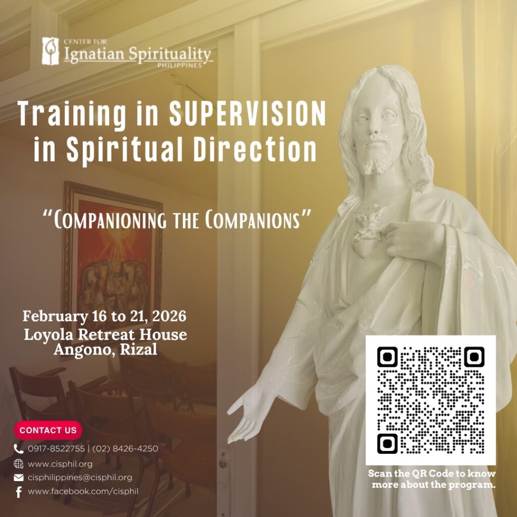 CIS Philippines is also making available the first module in the Guides’ Formation Series, MODULE 1: Foundations of Ignatian Retreat-Giving and Spiritual Direction. This module can be arranged for those who wish to pursue Module 2 this summer but have no previous experience of an individually-directed retreat. If you are interested and need to take