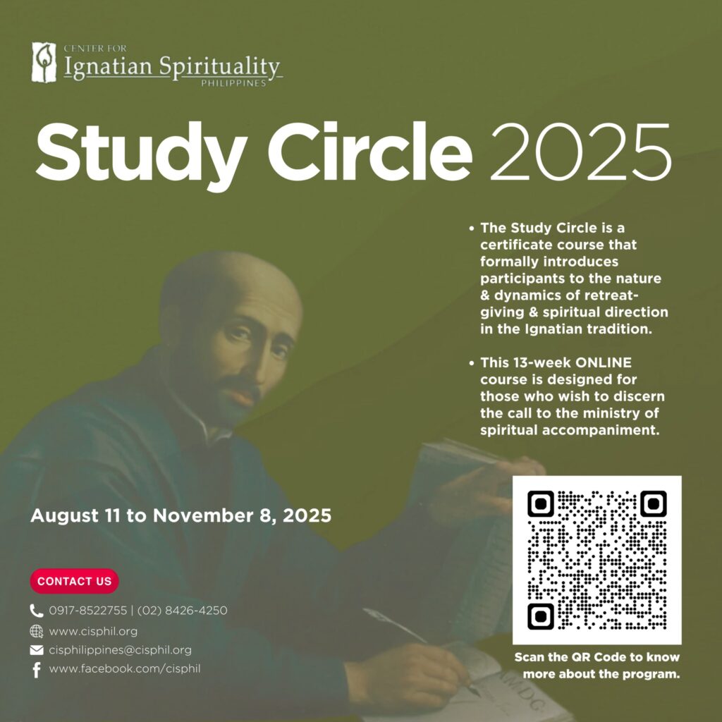 Now on its 6th year, CIS is pleased to announce its upcoming Online offering, STUDY CIRCLE 2025: a 13-week course on the Fundamentals of Ignatian Retreat Giving and Spiritual Direction ( Module 2). You may click the links below for the: PROGRAM DETAILS: https://bit.ly/SC2025-Overview APPLICATION FORM: https://bit.ly/Study-Circle-2025 #StudyCircle #praywithCIS #cisPH #IgnatianSpirituality #CISPhilippines
