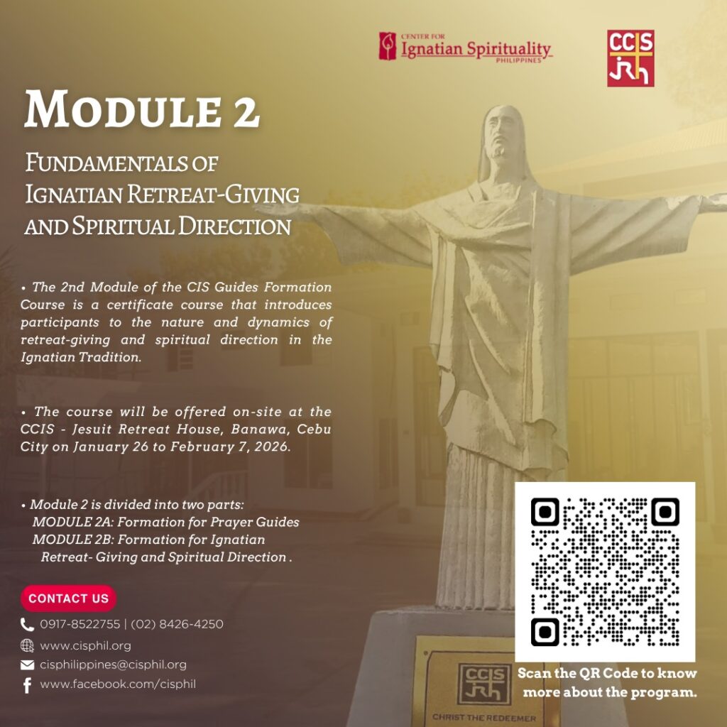 After its last offering in 2024, CIS Philippines is pleased to go back to Cebu Center for Ignatian Spirituality(CCIS) at the start of 2026 for MODULE 2: Fundamentals of Ignatian Retreat Giving and Spiritual Direction. This second module of the Guides’ Formation Course being joinly offered by CIS and CCIS, formally introduces participants to the